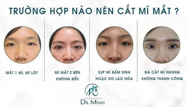 Cắt mí Dr.Minh là kỹ thuật tạo hình mí áp dụng cho cả nam và nữ muốn sở hữu đôi mắt to tròn, nếp mí tự nhiên. Hoặc những người có một số khuyết điểm về mắt như:
